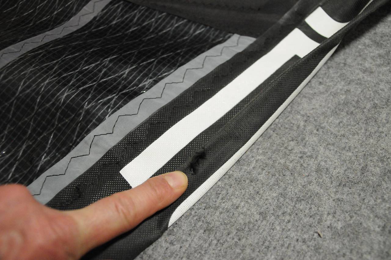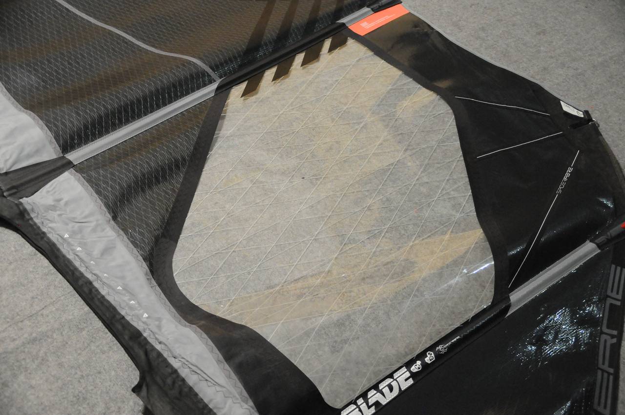 Dodatkowo Blade jest wykonany w 100% z X-Ply, to najmocniejszy a jednocześnie najlżejszy żagiel na rynku. Wytrzymałość żagla zwiększyła zastosowana technologia SpiderFibre, która również radykalnie zmniejszyła jego wagę. Niski ciężar żagla uzyskano także przez zastosowanie do konstrukcji górnych brytów materiału eM3, oraz nowego lekkiego i wytrzymałego eM4, zastosowanego w dolnych partiach żagla narażonych na uszkodzenia nogami. Okno żagla wykonano z X-Ply Dyneema, które oprócz wytrzymałości pozwala na nieograniczoną widoczność.
