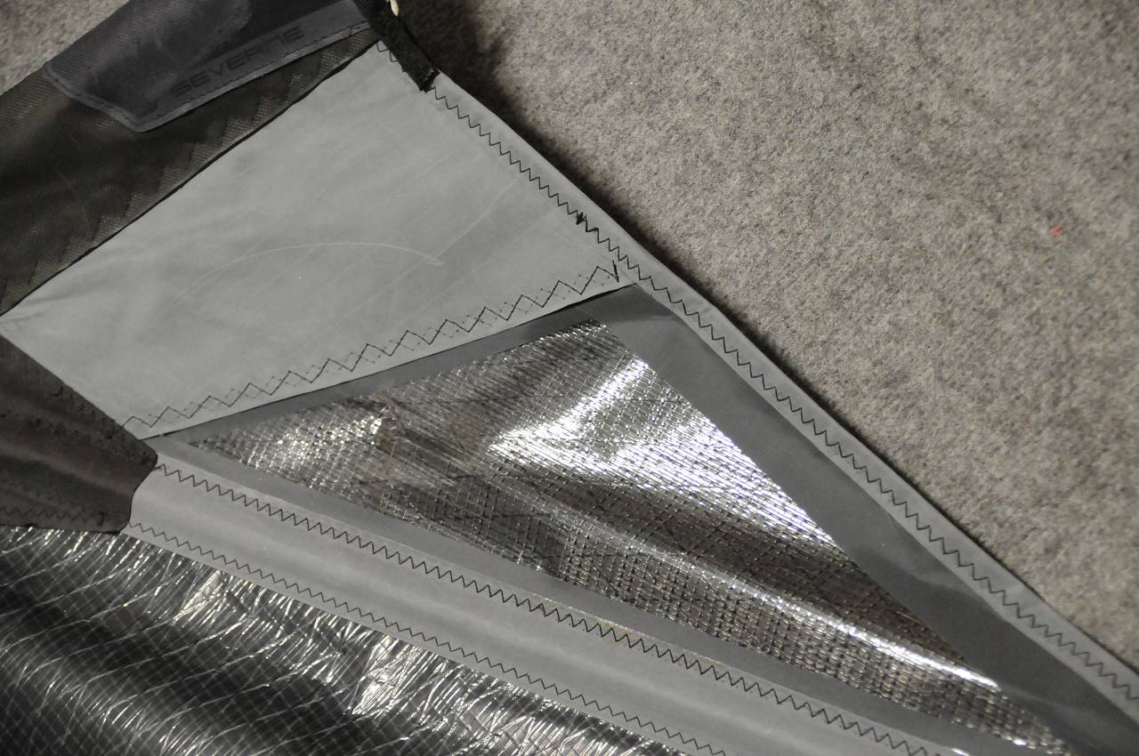 Dodatkowo Blade jest wykonany w 100% z X-Ply, to najmocniejszy a jednocześnie najlżejszy żagiel na rynku. Wytrzymałość żagla zwiększyła zastosowana technologia SpiderFibre, która również radykalnie zmniejszyła jego wagę. Niski ciężar żagla uzyskano także przez zastosowanie do konstrukcji górnych brytów materiału eM3, oraz nowego lekkiego i wytrzymałego eM4, zastosowanego w dolnych partiach żagla narażonych na uszkodzenia nogami. Okno żagla wykonano z X-Ply Dyneema, które oprócz wytrzymałości pozwala na nieograniczoną widoczność.
