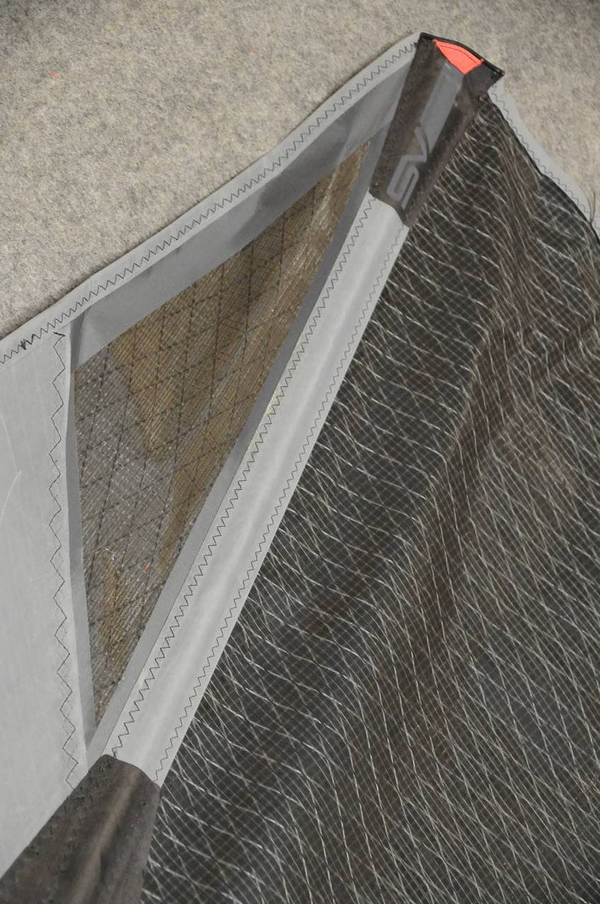 Naprawa małego górnego brytu została wykonana z zachowaniem profilu okna jak i całego żagla. Do naprawy użyty został najlepszy dostępny na rynku PX-5 , który dzięki swym zbrojeniom jest mocniejszy i droższy nawet od fabrycznie stosowanego X-Ply. Tak profesjonalnie wykonana naprawa sprawia, że cały bryt a tym samym żagiel, jest bardziej wytrzymały niż oryginał.